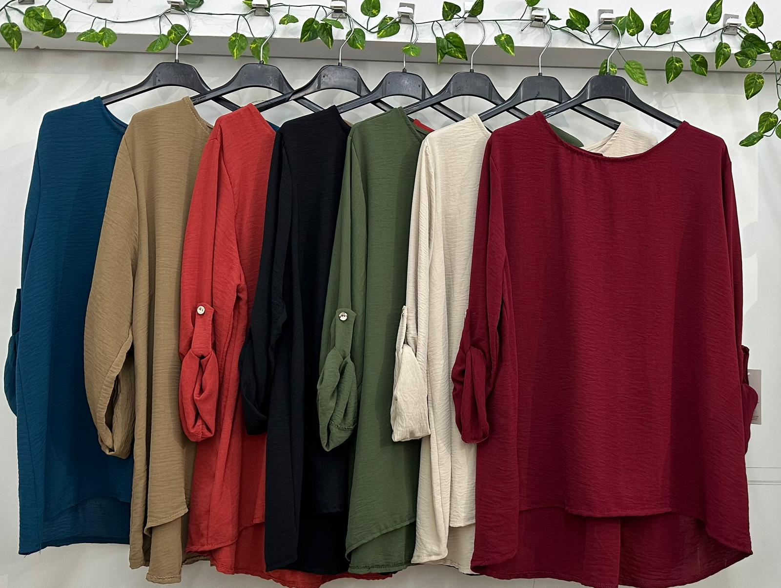 Blusa basic decote redondo 19,90 € Desconto de %. IVA incluído. Partilhar Cor Tijolo Comprar Contactar 100% Poliester. 60 cm de cava. S ao XXL