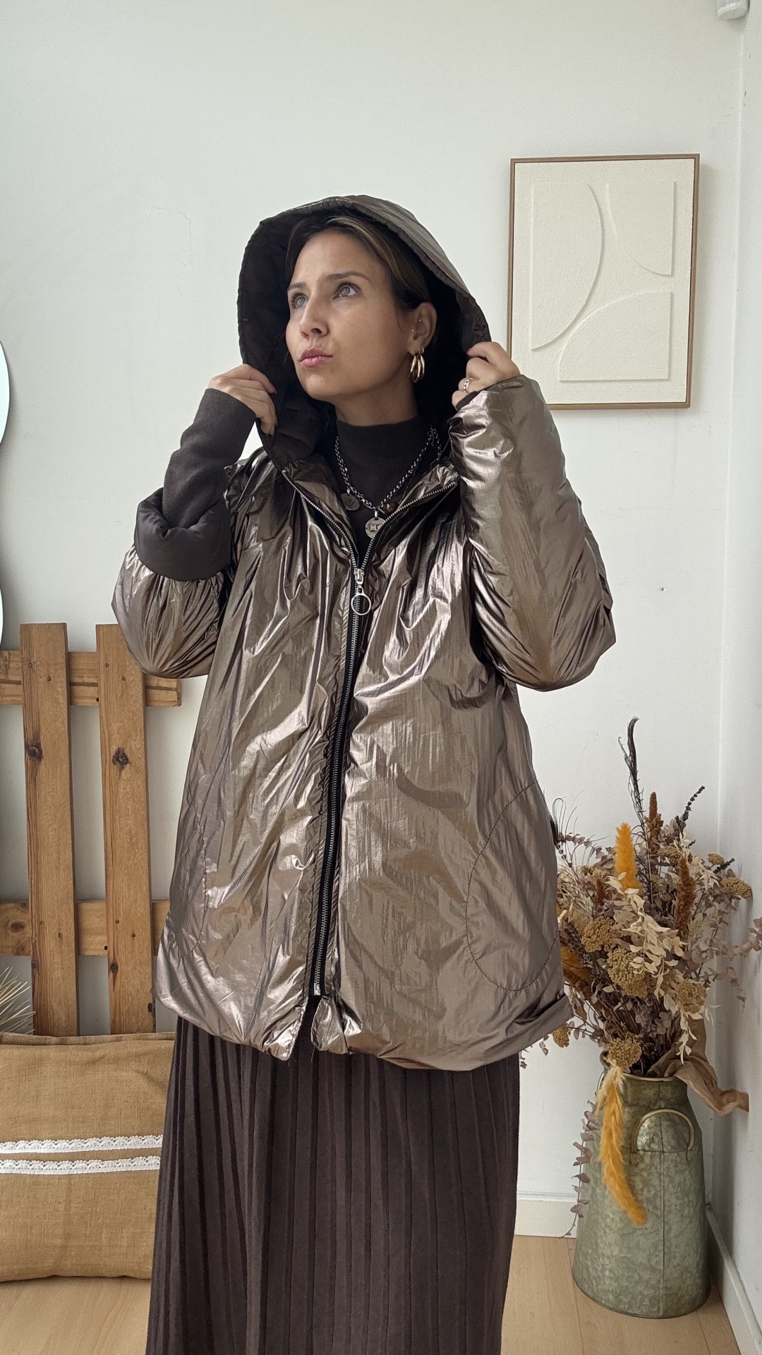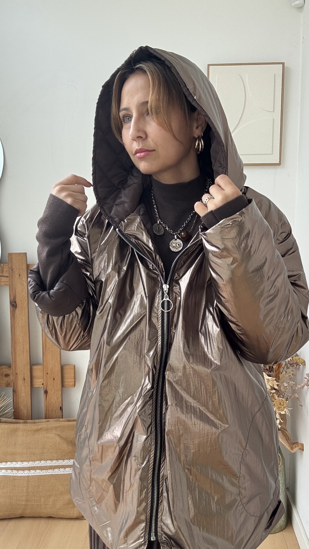 com carapuço e bolsos, forrado, 68 cm de cava