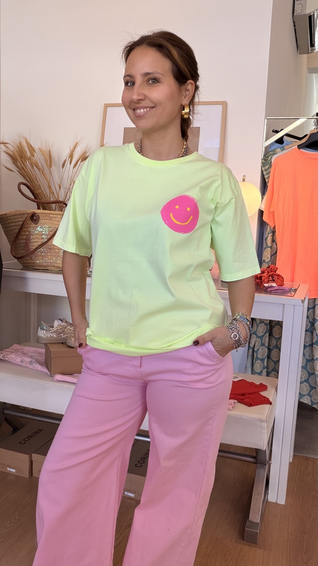 T-shirt Smile Néon 19,90 € Desconto de %. IVA incluído. em algodão com estampado! Ler mais Cor Verde Néon Laranja Néon Branco Quantidade Comprar Contactar Partilhar